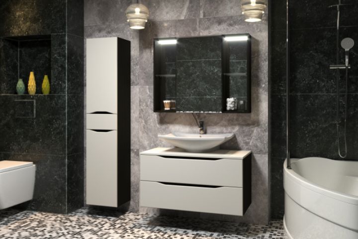 Визуализация 7ми различных коллекций мебели для ванных комнат, выполненная для каталога для мебельной фабрики.