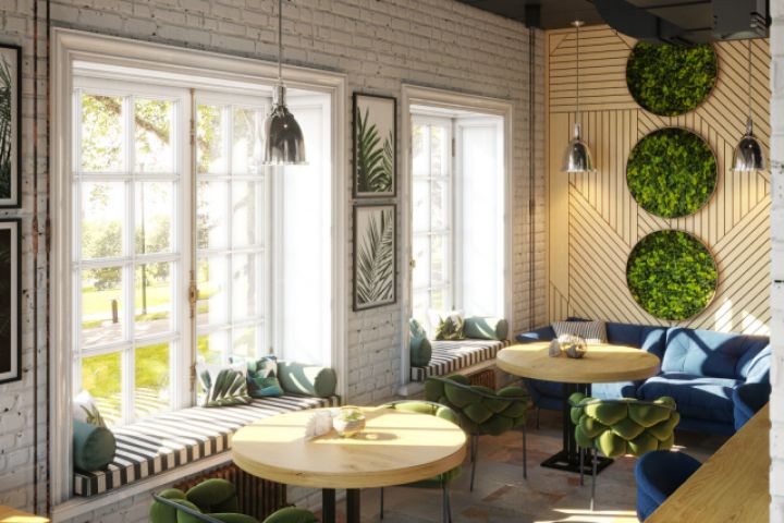 Проект по дизайну и визуализации кафе "Green Leaf Cafe"