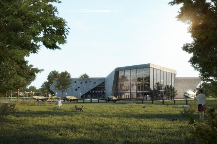 Визуализация здания музея польской авиации. Работа выполнена в рамках участия в марафоне RiverBlackClub.