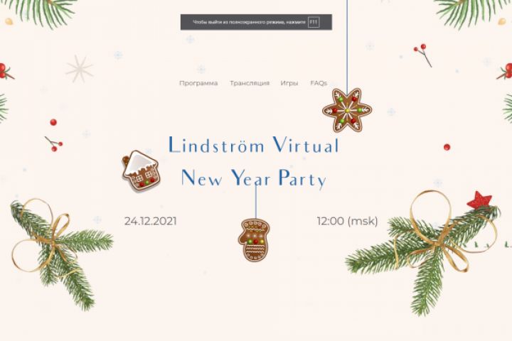 Сайт для супер крутой иностранной вечеринки Lindstrom Virtual New Year Part