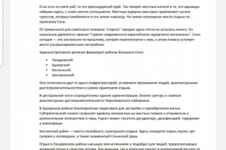 Простое Сео Техническое задание: Объем статьи 1500-2000 знаков Ключевые слова: Сочи сегодня, Сочи Краснодарский край, районы Большого Сочи