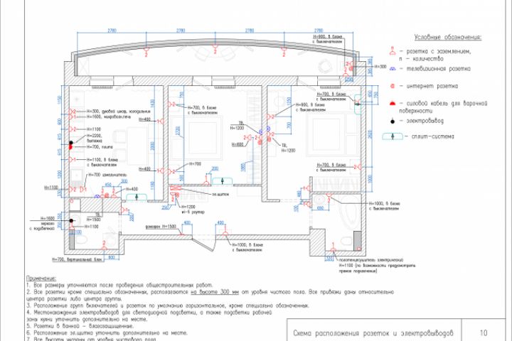 Схема расположения розеток и электровыводов