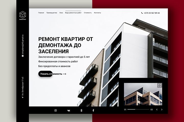 Разработать дизайн главной страницы Landing Page — «Ремонт квартир от демонтажа до заселения»