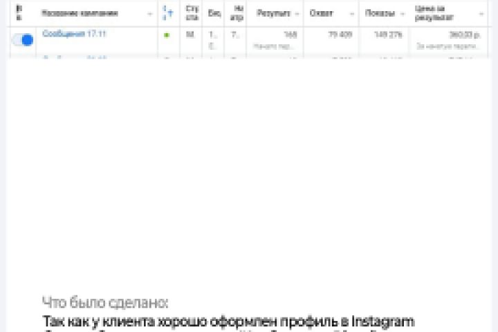INST/FB Запуск кампаний для фотографа 165 лидов CPL 360.03p