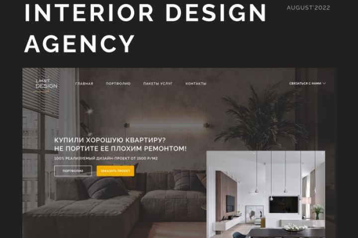 Главная страница для студии дизайна интерьеров. С макетом можете ознакомиться во вложенных файлах или по ссылке на Behance