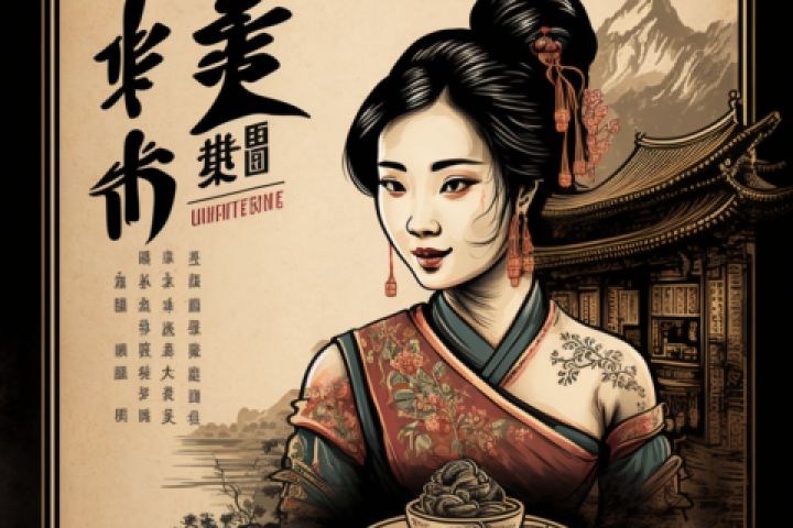 реклама кафе китайской кухни в стиле китайских рисунков вариант3