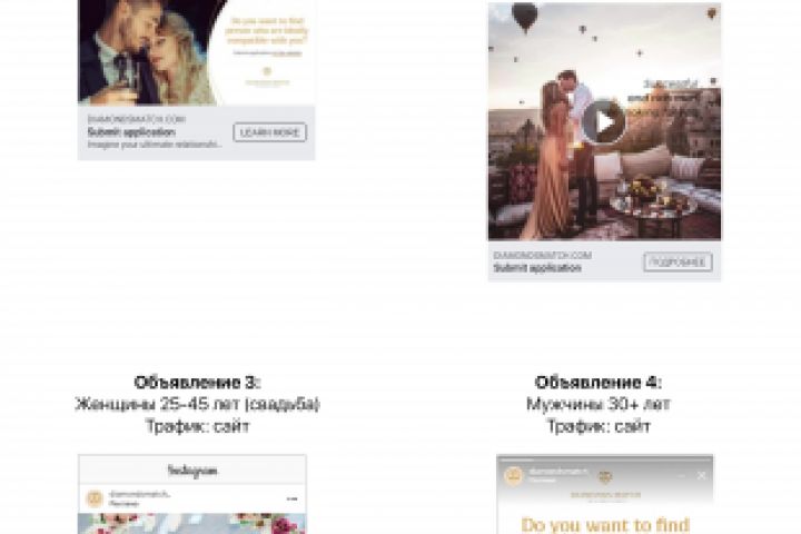 Англоязычная рекламная кампания для брачного агентства. Геолокация: США.