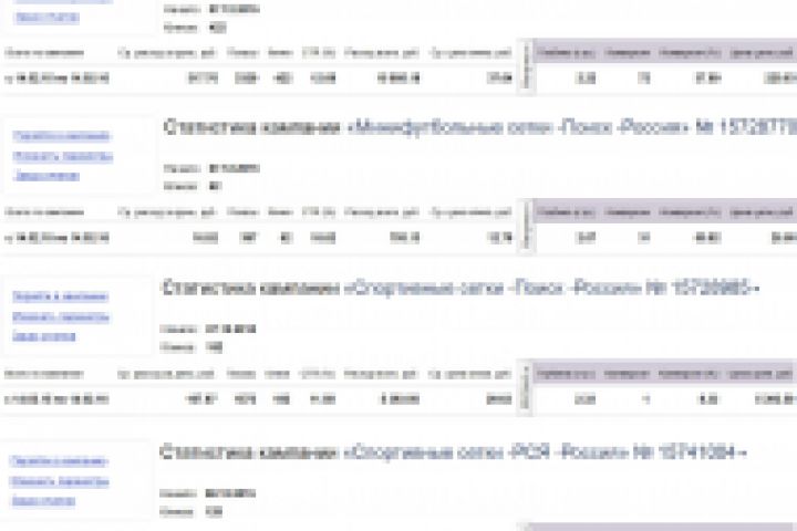 Спортивные сетки - CTR 13-16% / Конверсия 8-38%