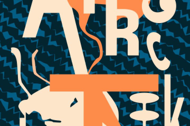 Плакат по тематике музыкального жанра арт-рок. Причудливые формы и "случайное" расположение букв символизируют экспериментальность данного направления в музыке.