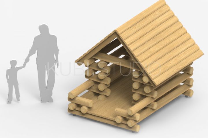 3д моделирование и проектирование большого домика из бревен для детской площадки