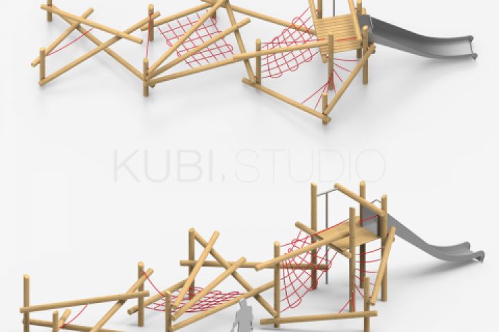 Разработка концепции, 3д моделирование и проектирование бурелома из бревен для детской площадки