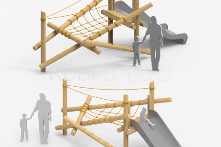 Проектирование и визуализация горки из бревен для детской площадки