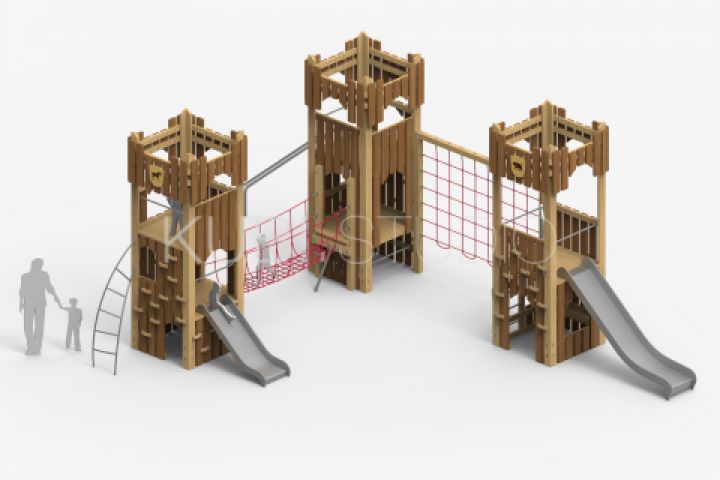 3д моделирование детской площадки в виде небольшой крепости с горками