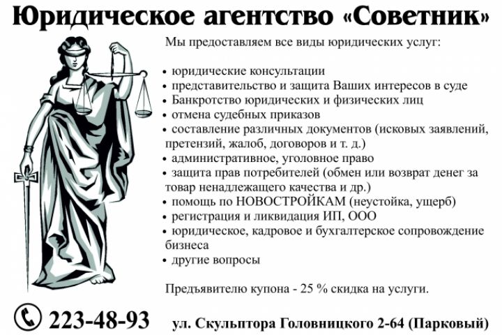 Рекламная листовка юридического агенства.