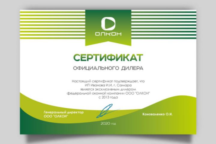 Сертиикаты Олкон