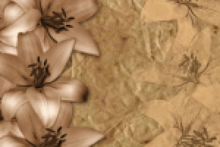 Лилии в стиле grunge. Коллаж с цветами и с состаренной бумагой. Наложение художественных слоёв и фильтров.