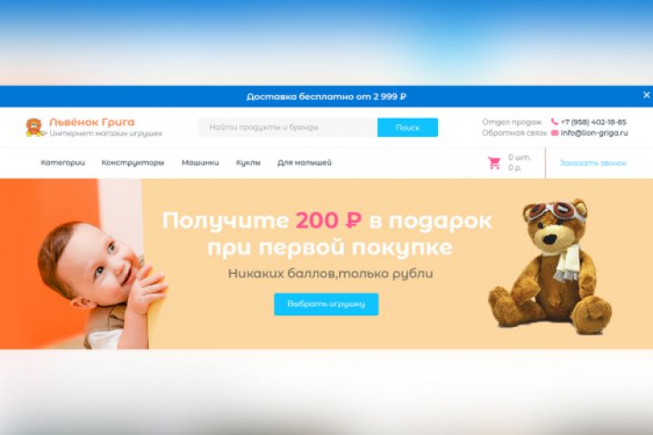 Дизайн интернет магазина игрушек "Львёнок Грига' под ключ