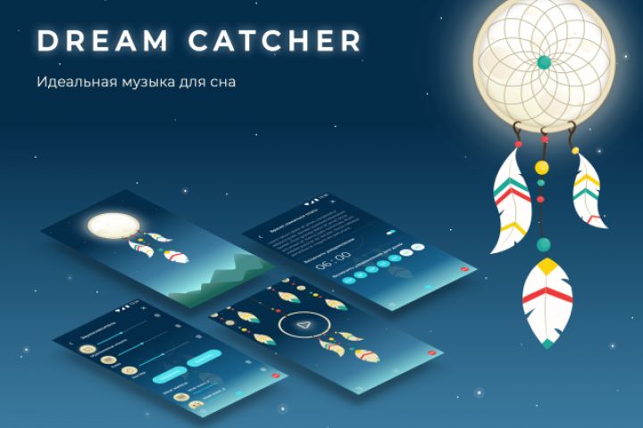 Приложение с музыкой для сна. Дизайн интерфейса, дизайн иллюстраций.