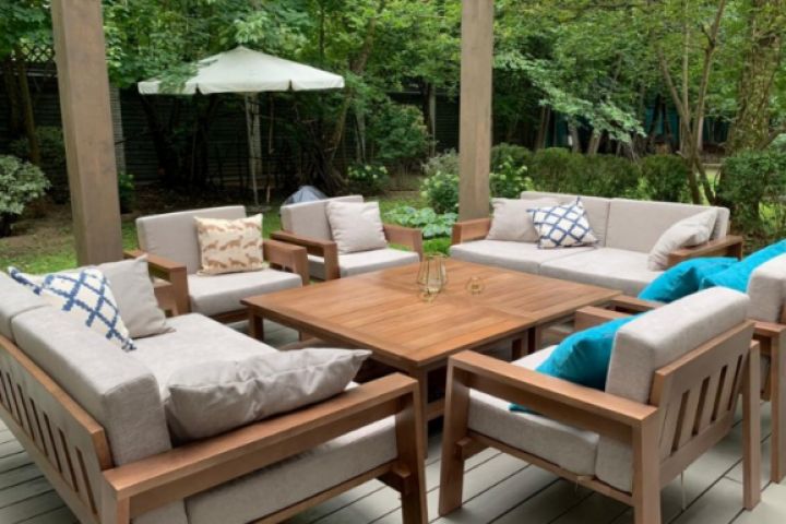 Комплект мебели из массива бука, цвет на выбор. 4 кресла, 2 стола, 2 дивана 2хместные. Ткань шенилл от Союз-М водоотталкивающий с легкой чисткой, любой цвет на выбор. Можно сделать такой комплект в любой другой ткани. В любом размере по длине, состав комплекта можно менять. Производство находится в СПБ.