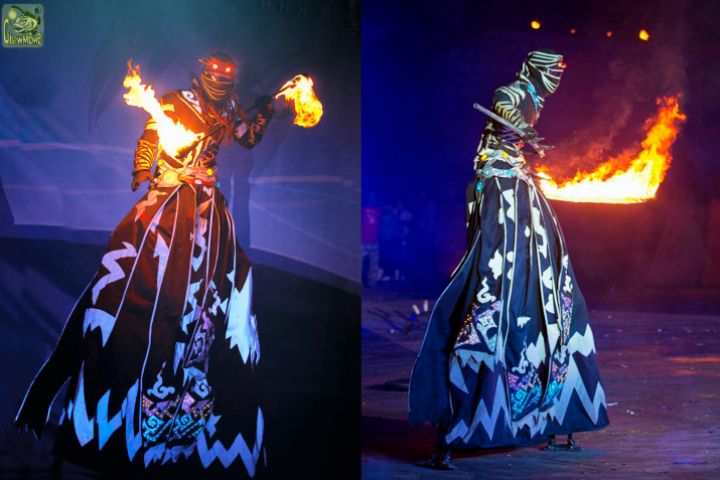 Светодиодный костюм для работы на ходулях ).Огнеупорен, предназначен для работы с огнем и пиротехникой. Прототипом является босс из игры "Warrior within" серии игр " Prince of Persia".