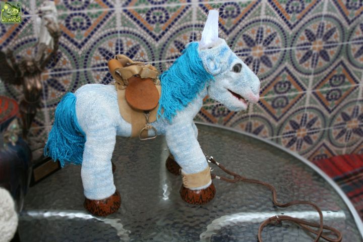 Единорог с седлом на колесиках, чтобы катать кукол. Рог подсвечен светодиодом.