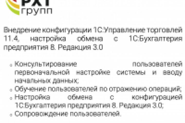 Внедрение конфигурации 1С:Управление торговлей 11.4, настройка обмена с 1С:Бухгалтерия предприятия 8. Редакция 3.0