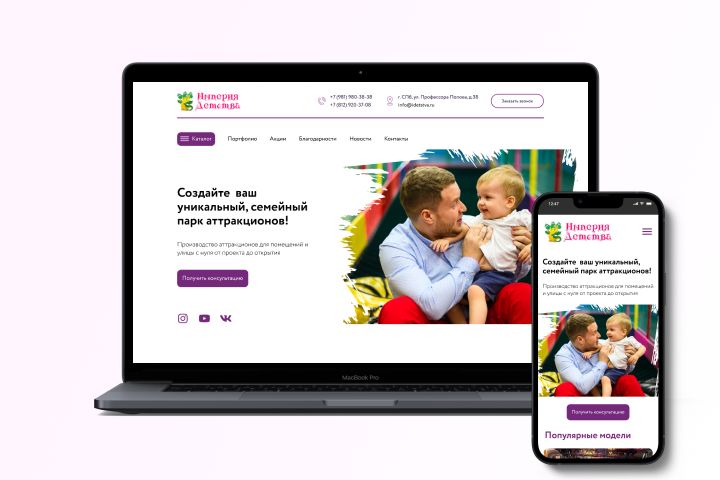 Многостраничный сайт с интернет магазином для производителя аттракционом Империя Детства.