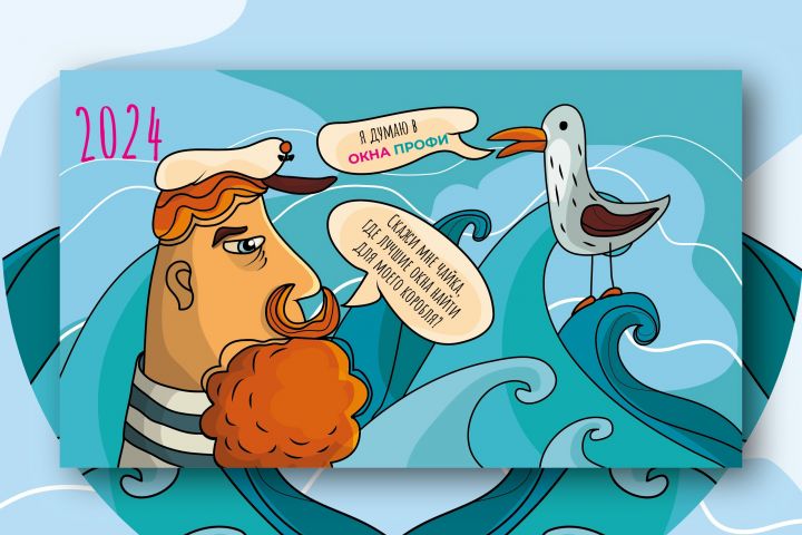 Корпоративный календарь полностью иллюстрированный. Каждая иллюстрация отрисовывалась с нуля.