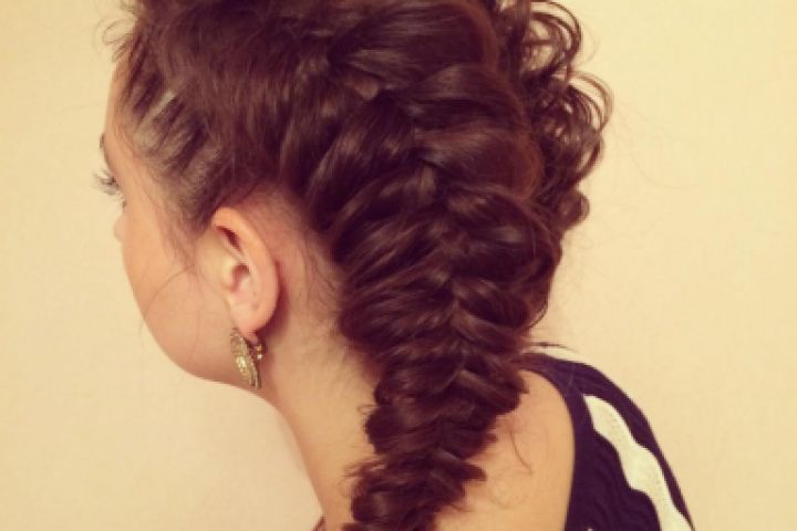 Коса Рыбий хвост, собранная в прическу
