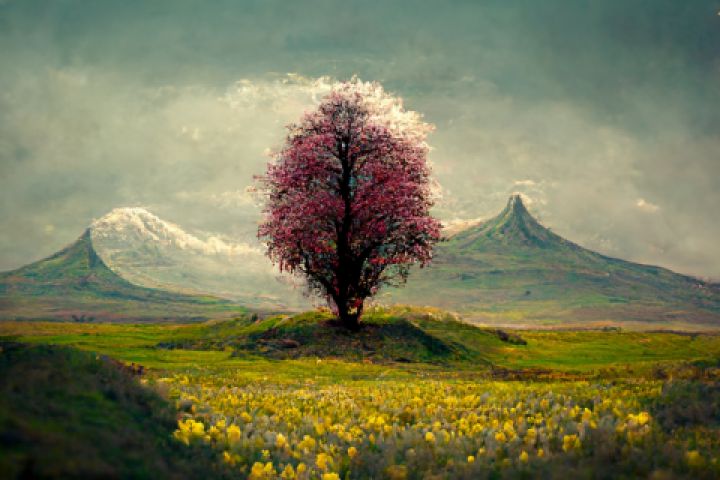 Одна из моих любимых работ, на нее было затрачено около 2-ух недель, очень давно хотелось нарисовать пейзаж с весенним деревом, и о спустя много проб, и ошибок, это вышло! и я очень рада этой работе, и клиент был несказанно рад.