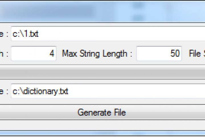 Утилита для создания тестового файла заданного размера. Результатом работы должен быть текстовый файл со строками заданного формата и по заданному словарю. Должно быть какое-то количество строк с одинаковой частью.