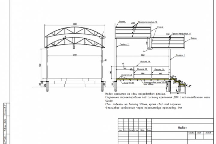 Необходимо было разработать детальные чертежи навеса по эскизу в карандаше.