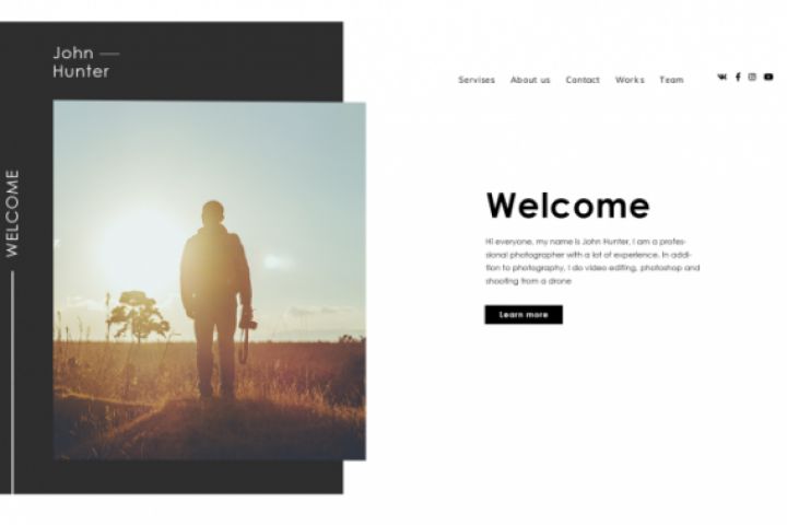 Красивый первый экран лендинга, выполнен в стиле минимализма. Лёгкий, ничего лишнего, современный. Был сделан в фотошопе, а не в фигме.