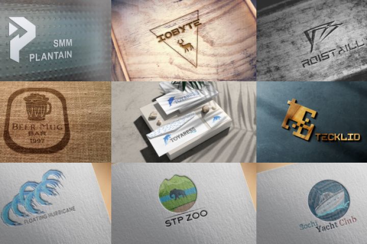 Девять оригинальных логотипов с мокапами.