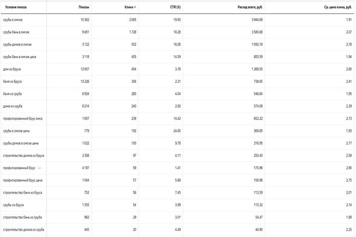 Статистика по ключевым словам (В поиске)