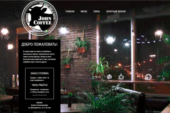 Стояла задача сверстать одностраничный адаптивный сайт (Landing Page) по готовому дизайн макету для компании John Coffee. Задача была выполнена, сайт работает для любой версии телефонов, планшетов и компьютеров.