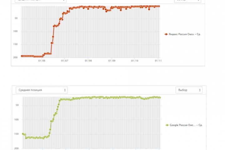 Графики изменения позиций (яндекс и гугл)