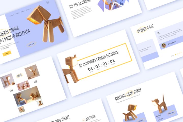 Лэндинг создан для компании, которая занимается созданием необычные деревянных ламп в виде животных. Дизайн отражает стиль и ощущения, которые производит продукция на покупателей: уют, тепло, интерес. Цель проекта – рассказать и замотивировать посетителя на покупку