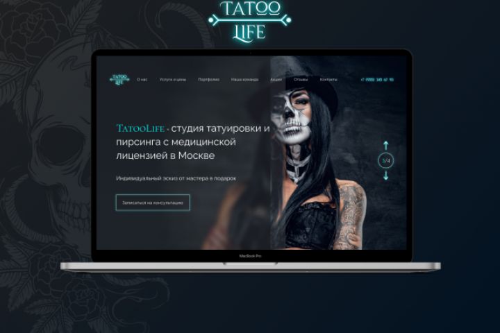 Я разработала Landing Page для студии татуировки и пирсинга, проанализировав предварительно сайты других студий и салонов этого направления.