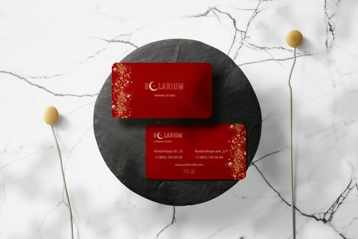 Концепция визитки для студии солярия. Я разработала логотип в стиле Минимализм, так как он удобен в использовании(легко перенести без потерь на любой печатный носитель)и никогда не выйдет из моды, красный цвет и блестки создают настроение праздника, выгодно выделяются на фоне других визитных карт, "незаезженный" дизайн студий красоты и соляриев.
