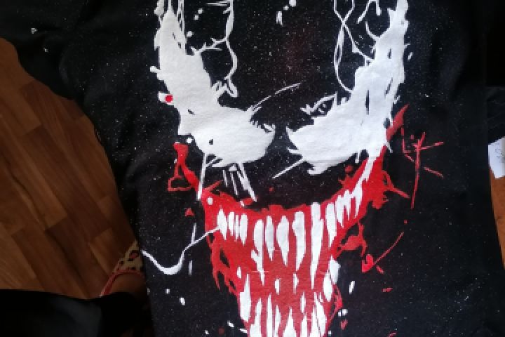 Футболка расписана специальными красками для одежды. Заказчик просил Венома.