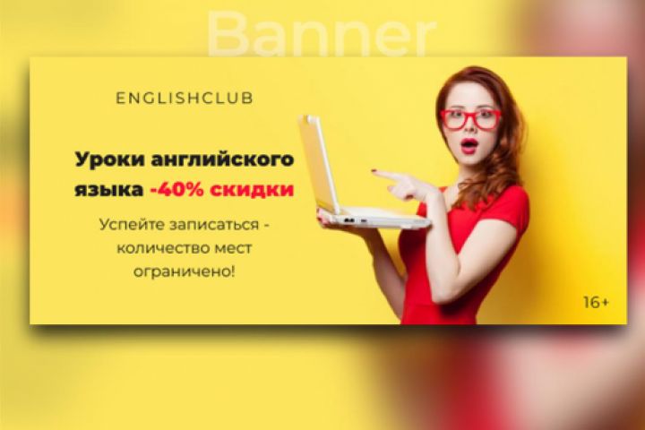 А именно: сделать яркий, привлекающий внимания баннер с удивленной девушкой.