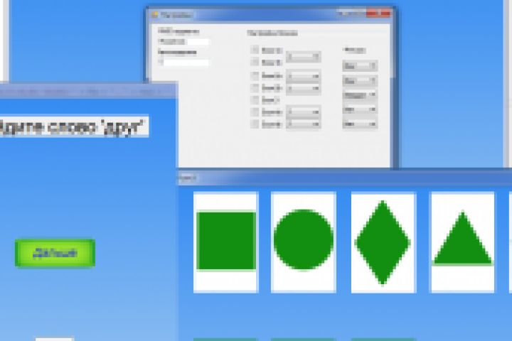 тесты на слух(16 штук) тесты на фонетическое восприятие (8 штук), тесты на зрение(карты с фигурами), тесты на время. Позволяет вести базу пациентов и просматривать статистику всех ответов и пройденных тестов.