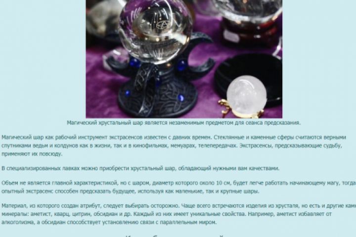 Материал о гадании на хрустальном шаре. 9583 знаков без пробелов.