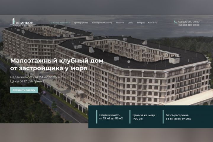 Landing Page для ЖК Авиньон, которы представил новый современный жилой комплекс. Задача была поставлена сделать стильный, минимализм, ощущение качества, легкости, живости.