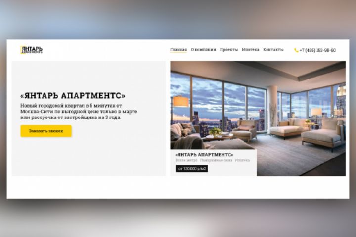 Сайт для московской строительной компании, которая представила новый современный комплекс. Задача была поставлена сделать стильный, минимализм, ощущение качества, легкости, живости.