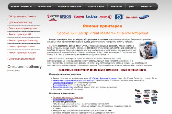 Комплексный аудит сайта организации, которая специализируется только на ремонте принтеров.
