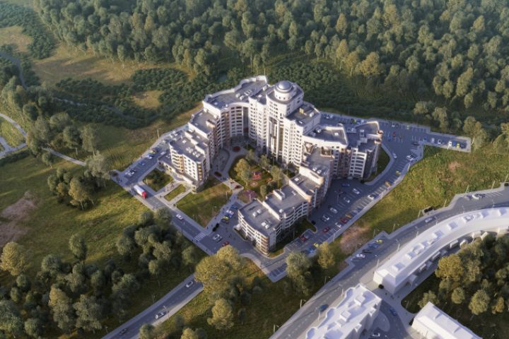 Визуализация с высоты птичьего полёта ЖК "Вера" для сайта застройщика