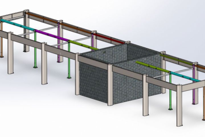 По запросу заказчика был разработан быстровозводимый сборный каркас автомойки самообслуживания, предусмотрены места крепления под необходимое оборудование и трубопроводы, произведен и предоставлен расчет балок с учетом снеговой нагрузки.