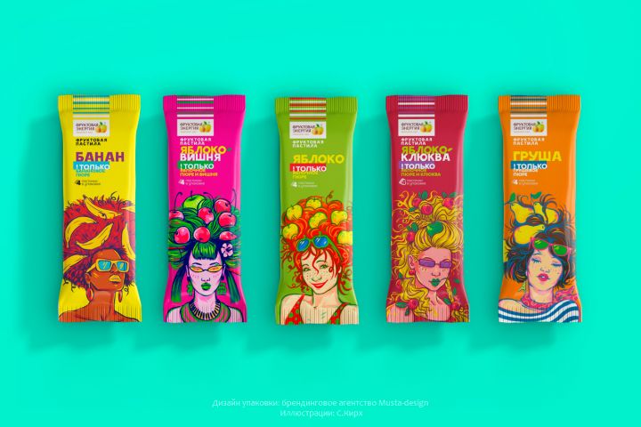 Моя работа заключалась в создании иллюстраций для этих упаковок. Получилось ярко). Рассмотреть проект подробнее можно по ссылке.